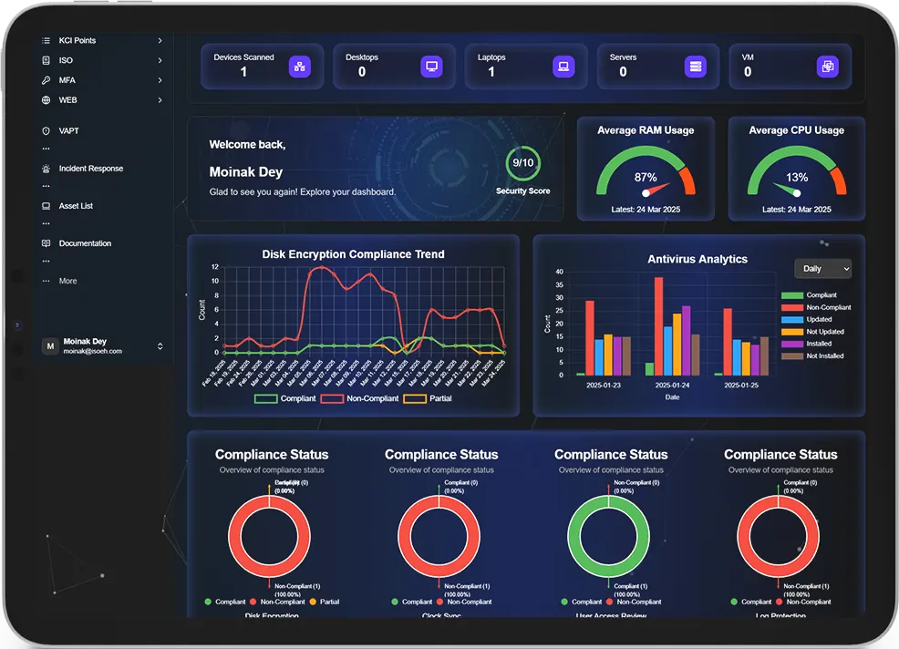 Access all critical reports in one clean, central place. From MFA to Antivirus to VAPT reports—everything is organised. No more switching tools or chasing scattered files. Save time, reduce confusion, and get a full view of your security.